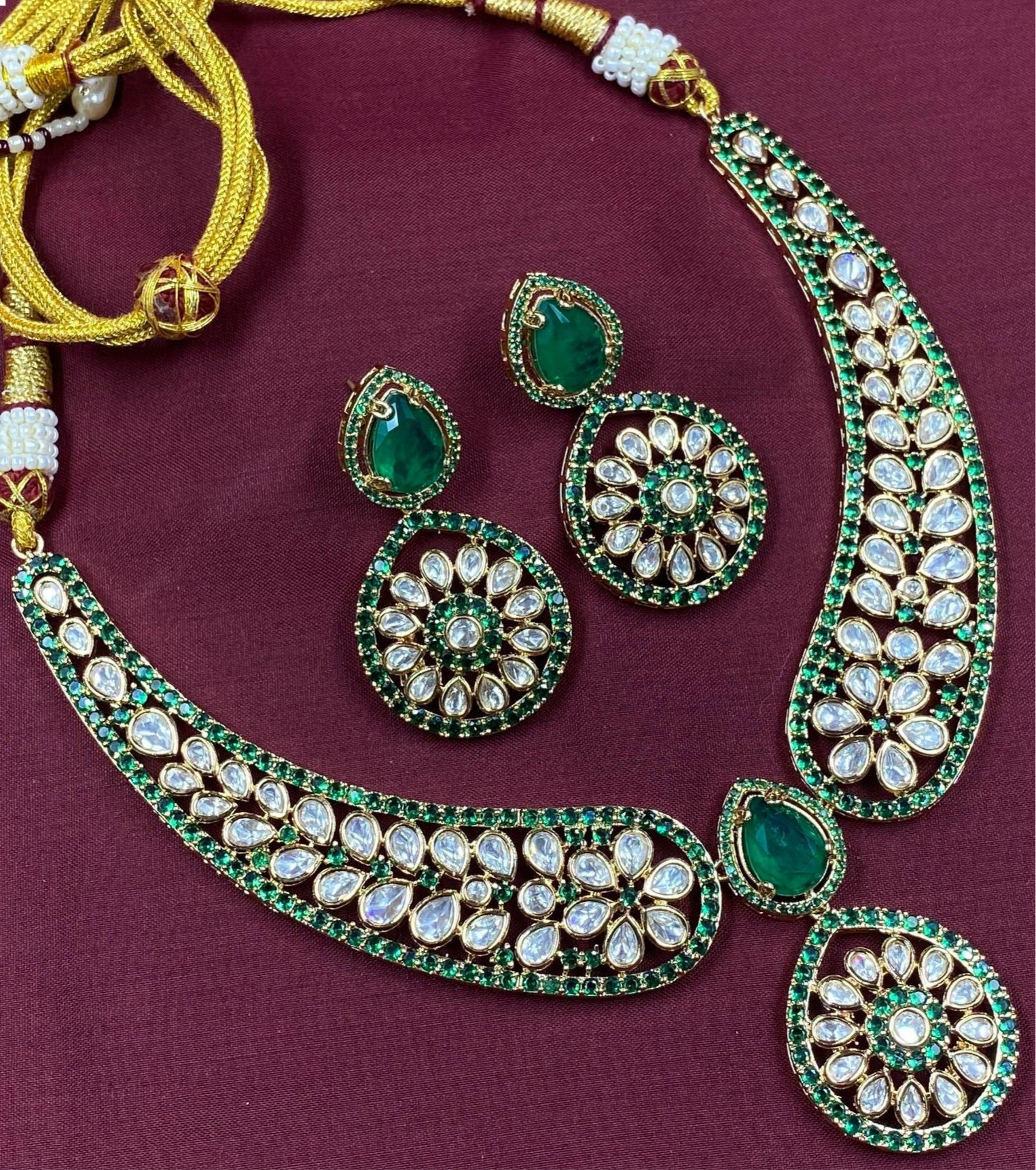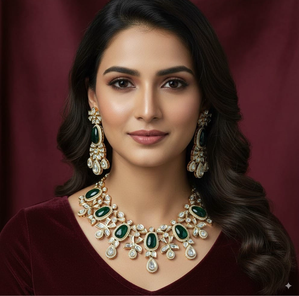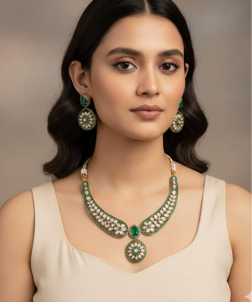 Discover our Necklace Collection, featuring handcrafted Kundan, American Diamond, Gold Pearl, and Anti-Tarnish designs. Perfect for weddings, festive looks, or everyday elegance. Pair with our Zircon Earrings for a stunning style. Shop now for timeless jewelry that shines.