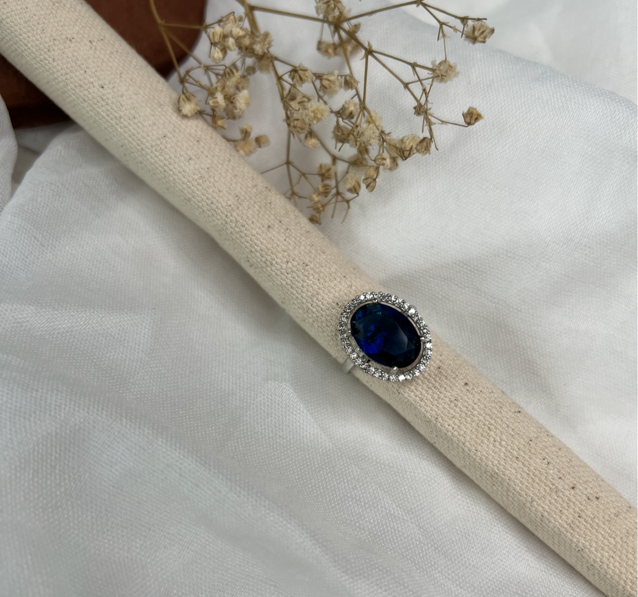Silver Plated American Diamond Single Blue Stone Adjustable Ring