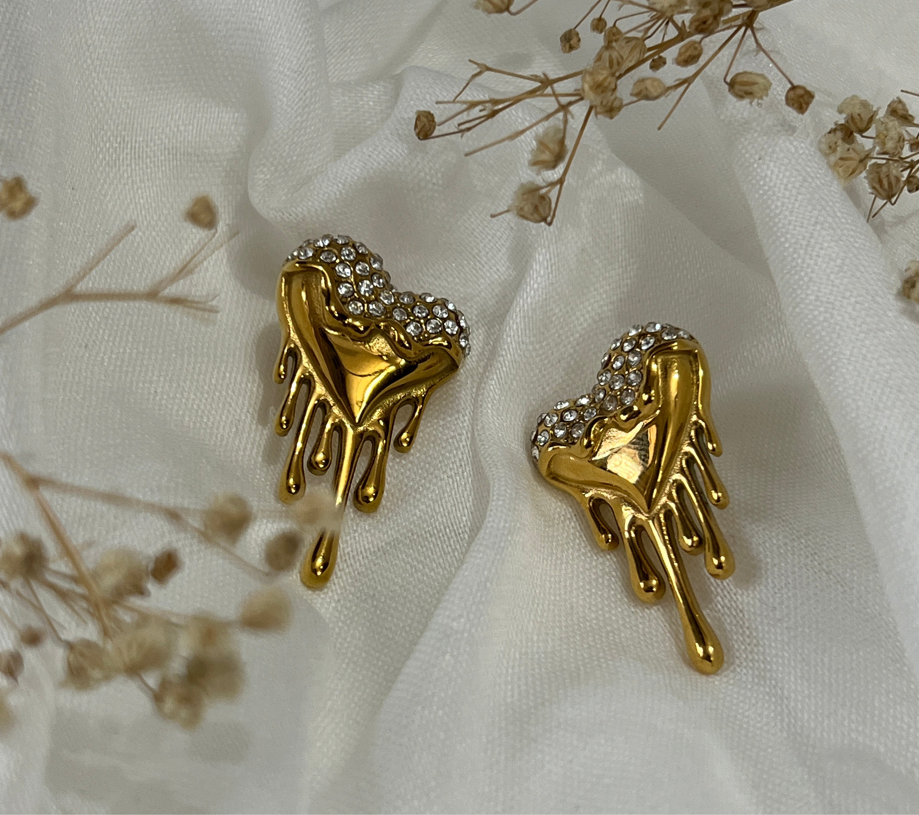 18k Gold Plated Antitarnish Melting Hearts Earring With Studded Stones