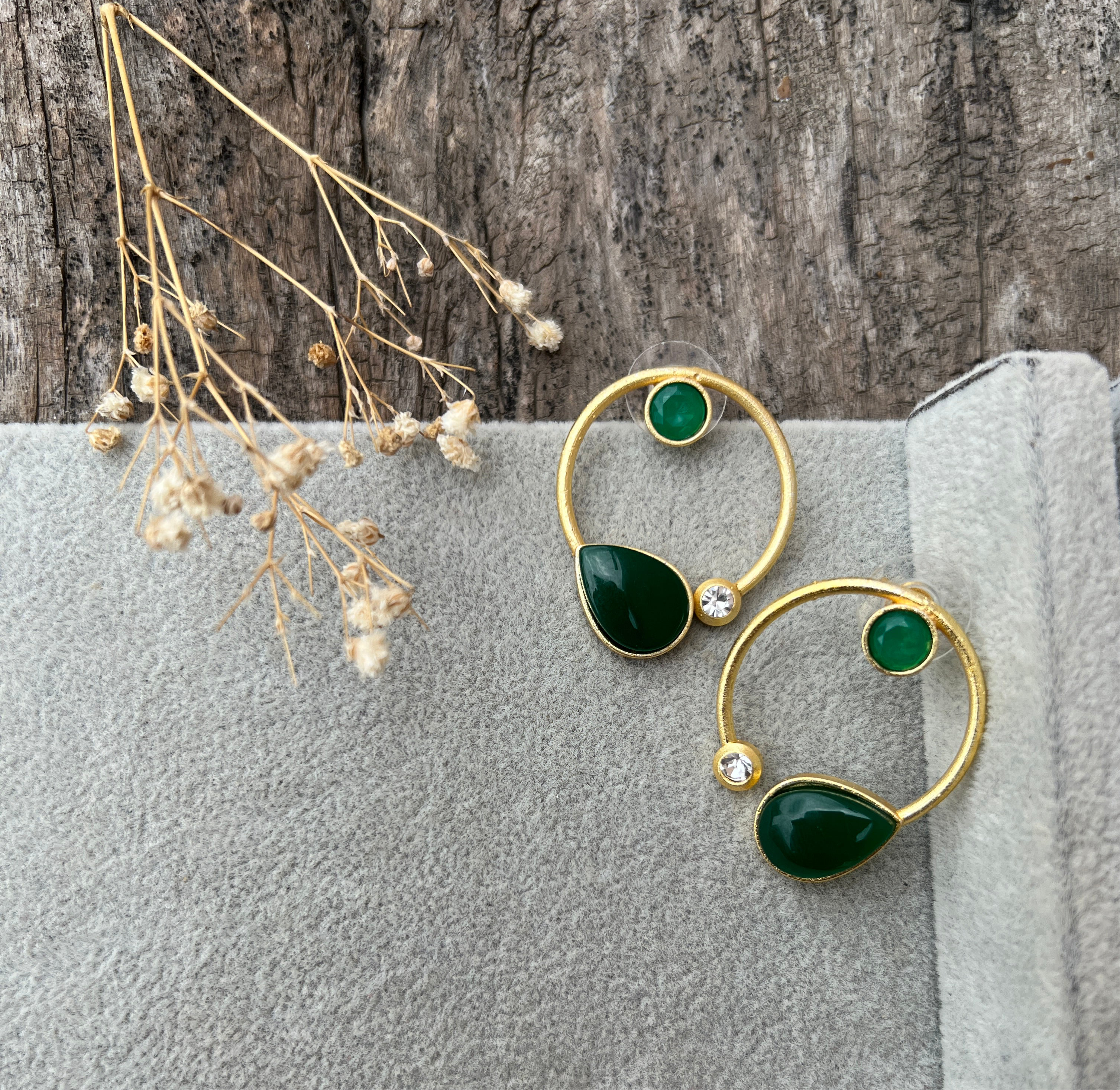 Premium Quality Golden Stone Earrings | Unique Western Style- Green