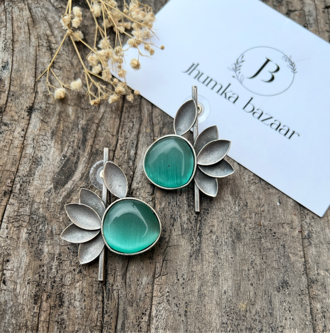 Monalisa Stone Half Flower Stud Brass Earrings – Attractive Silver Replica Polish- Mint