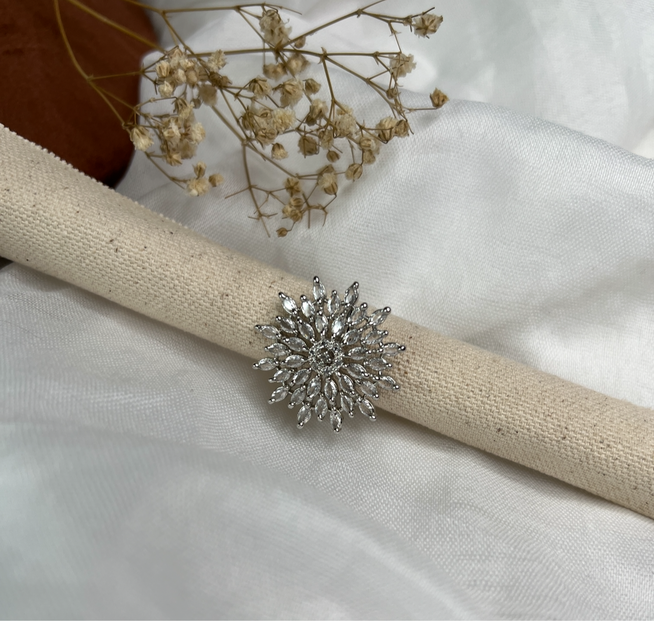 Silver Plated American Diamond Mini Flower Adjustable Ring
