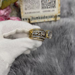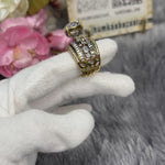 Designer Gold Finish With Cutwork Zircon Cocktail Free Size Ring- Clear